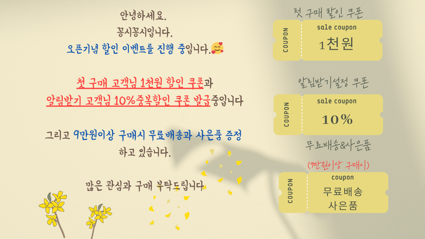 • 배송안내: 전국 배송이 가능하며, 토요일과 공휴일을 제외하고 평균 2~5일 소요됩니다.