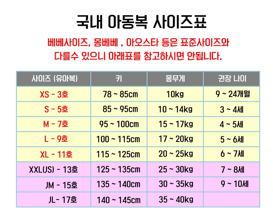 권장사이즈는 일반적인 권장 나이로 안내드립니다.