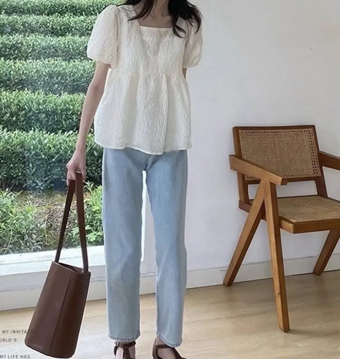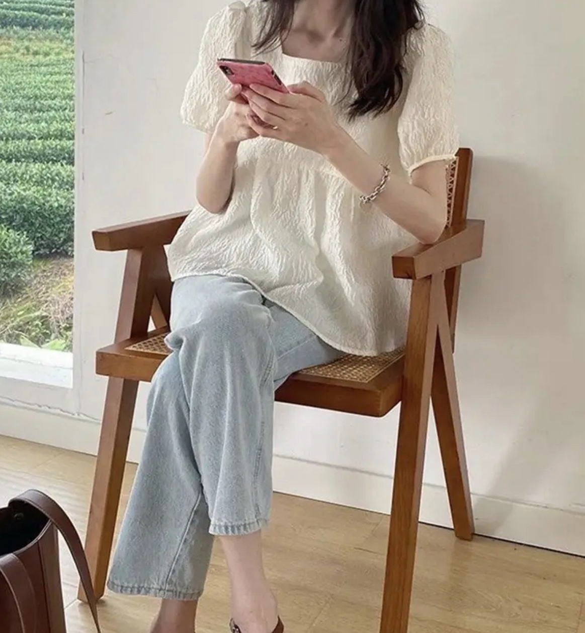 여성 여름 캐주얼 스퀘어넥 5부 블라우스