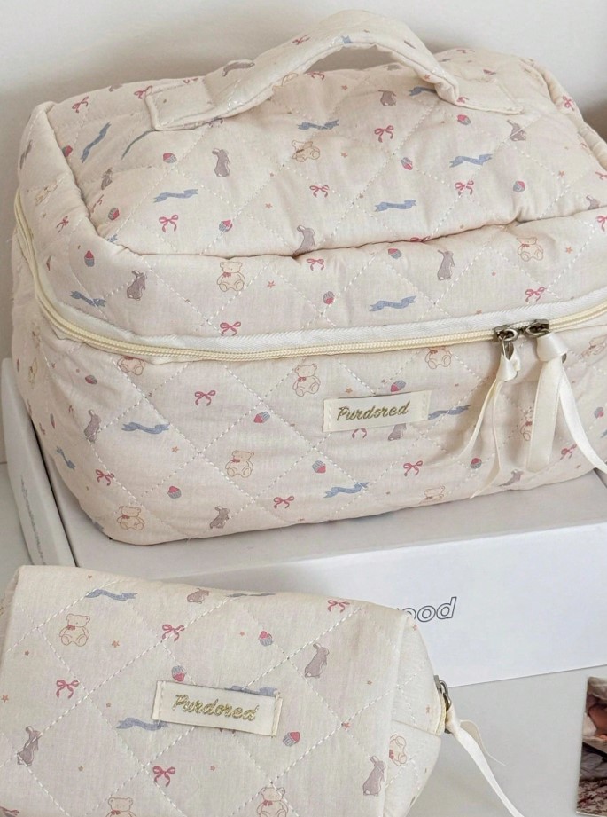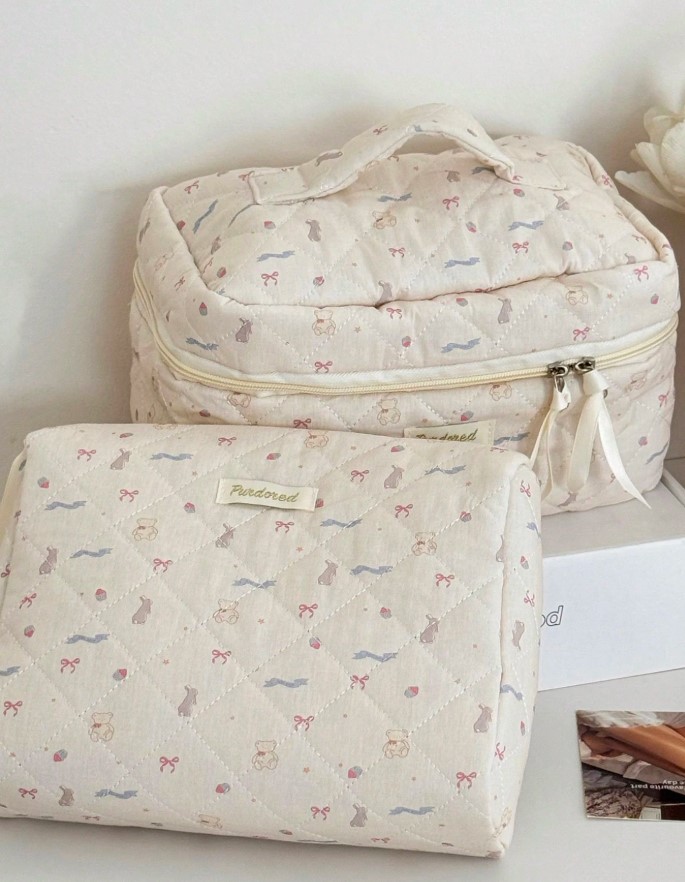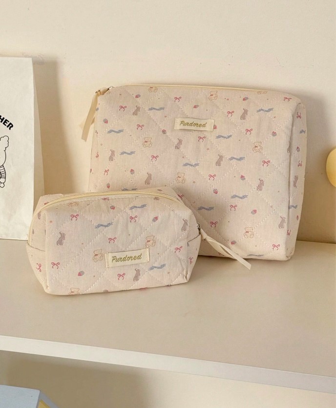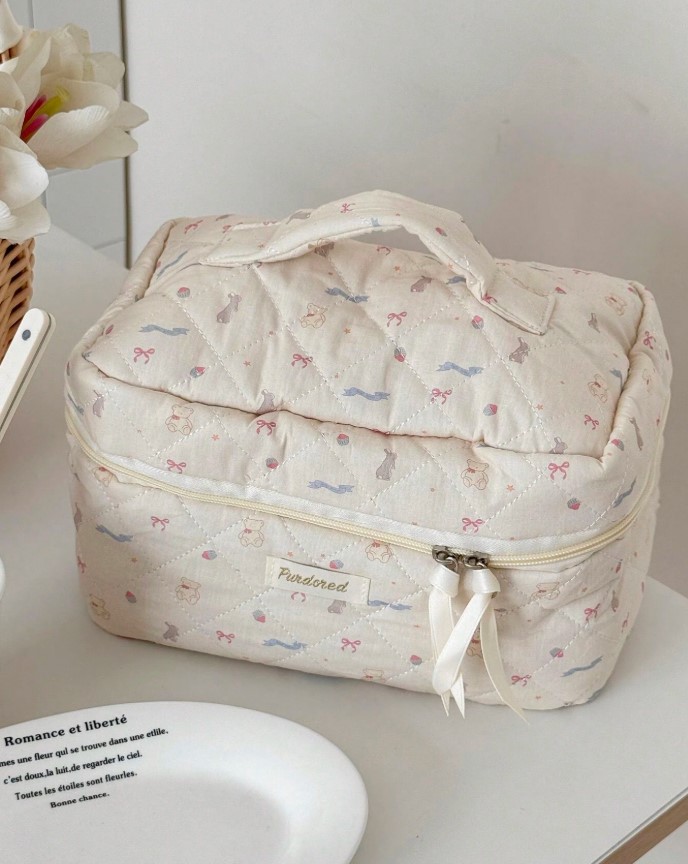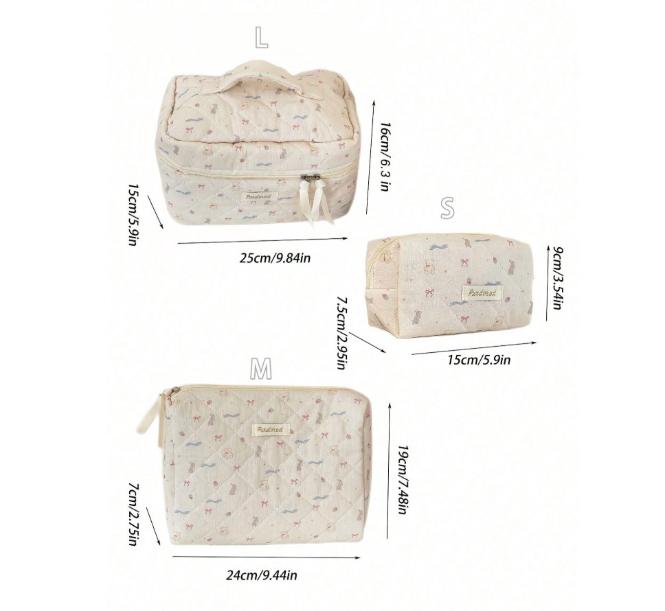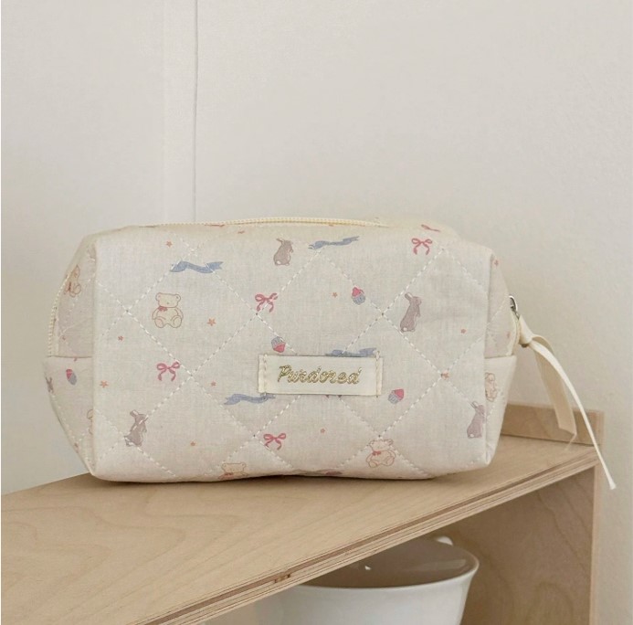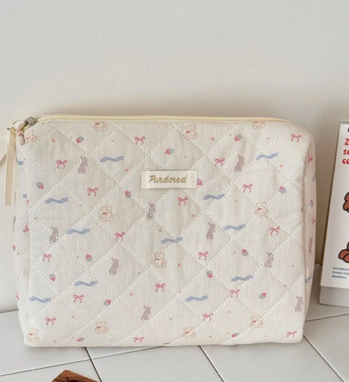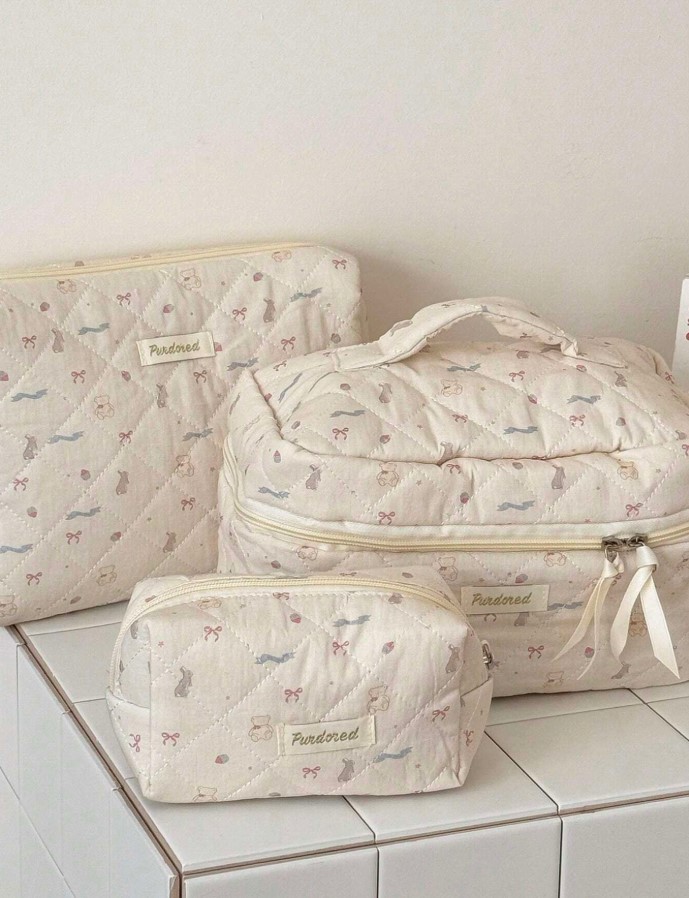 곰리본화이트파우치세트(손잡이 큰 가방/클러치백/화장품가방)+추가(3사이즈세트)
